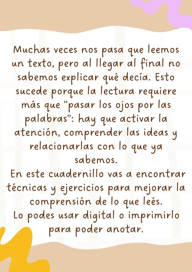 ¿Querés aprovechar mejor tu tiempo de estudio y entender lo que leés de verdad? Este cuadernillo reúne técnicas efectivas para mejorar la comprensión lectora y la retención de información.